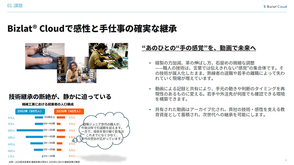 ・感性と手仕事の継承困難:熟練者の退職と若手不足・工程・仕様のばらつき:製品ごとの属人化と指導の非体系化