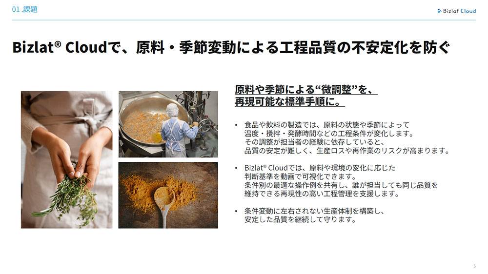 ・熟練者の退職による品質・衛生ノウハウの空洞化・原料・季節変動による工程品質の不安定化